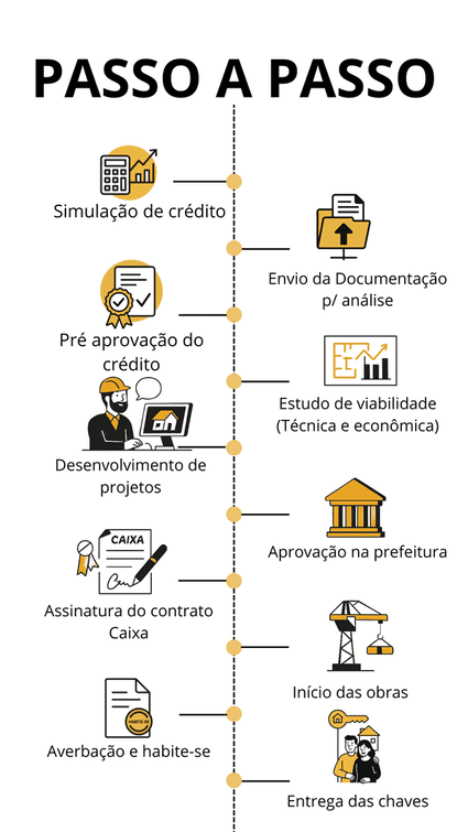 Esse crédito é destinado à construção de uma única casa em um único terreno. Não é permitido utilizá-lo para empreendimentos multifamiliares (duas ou mais casas no mesmo lote), nem para construção de quiosques, piscinas, reformas ou instalação de energia solar.